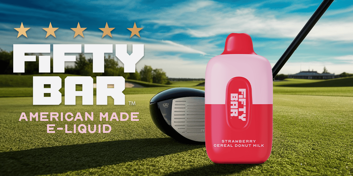 Drive to the green with Fifty Bar. The only nicotine disposable filled with American Made e-liquid and Built in the USA. Available in 20 unique flavors to suit everyone’s tastes and preferences.
