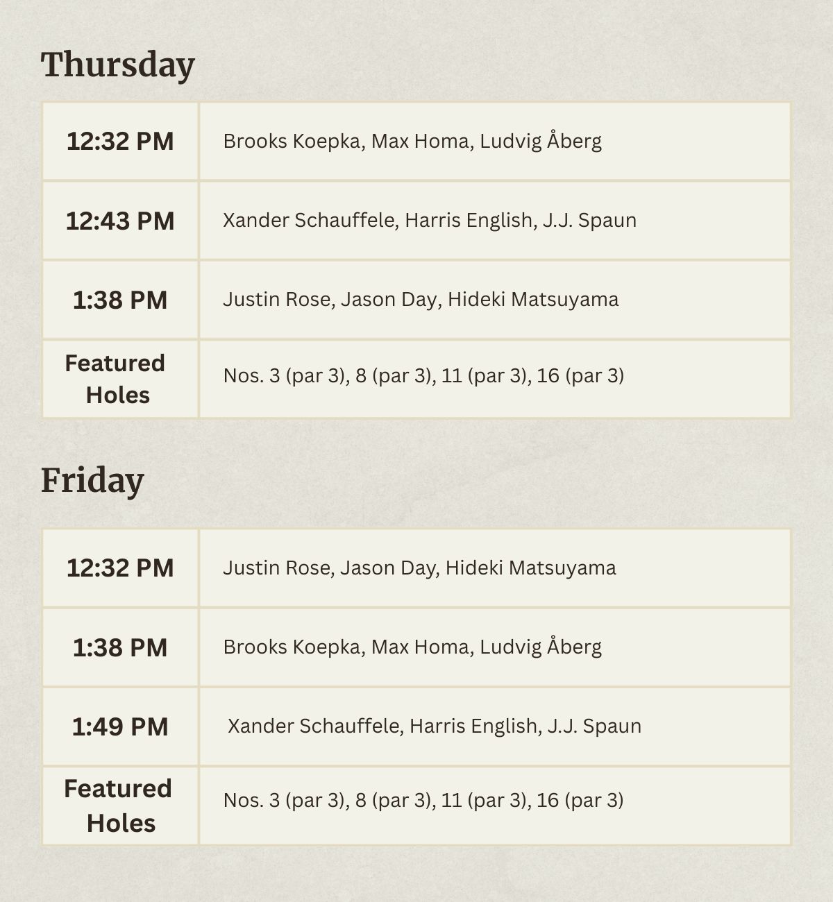 Xander Schauffele, Jason Day, Chris Gotterup, Keegan Bradley, JJ Spaun, Ludvig Aberg, and Cameron Young are among the notable names in the field.