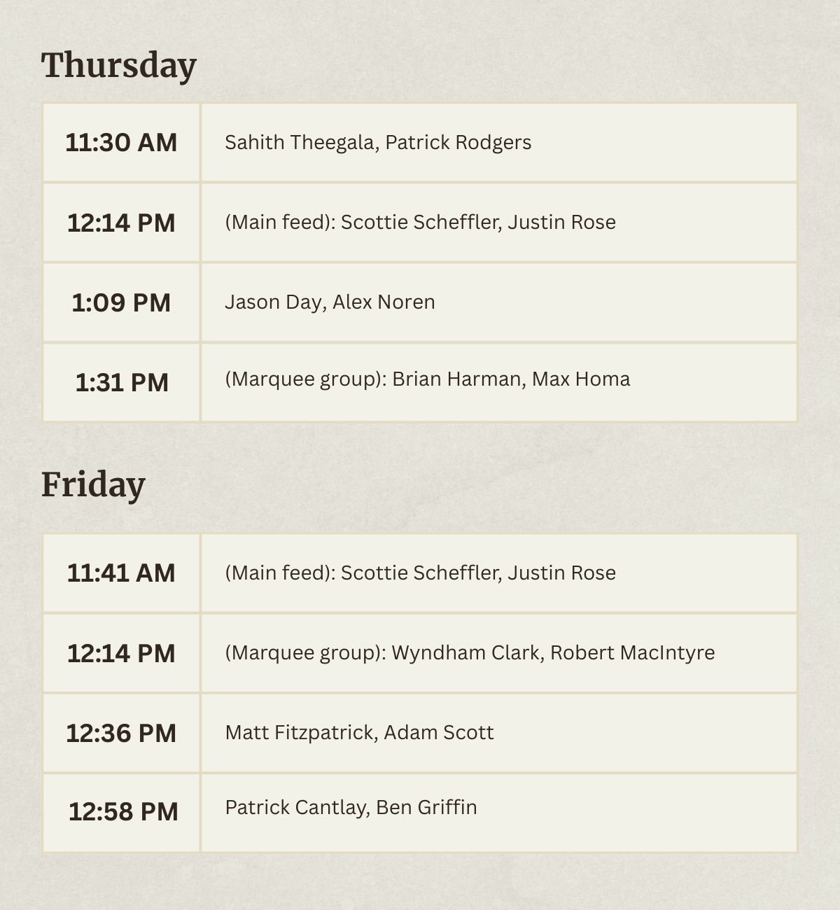 Even though it’s not a Signature Event, the field is still pretty loaded and features last years champion, Sepp Straka, along with Ben Griffin, Bobby Mac, Russel Henley, Ludvig Aberg, Sam Burns, Patrick Cantlay, Justin Rose, and Matt Fitzpatrick.